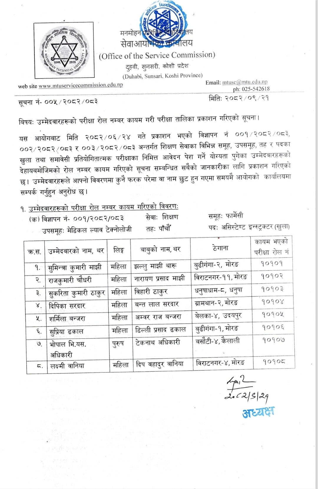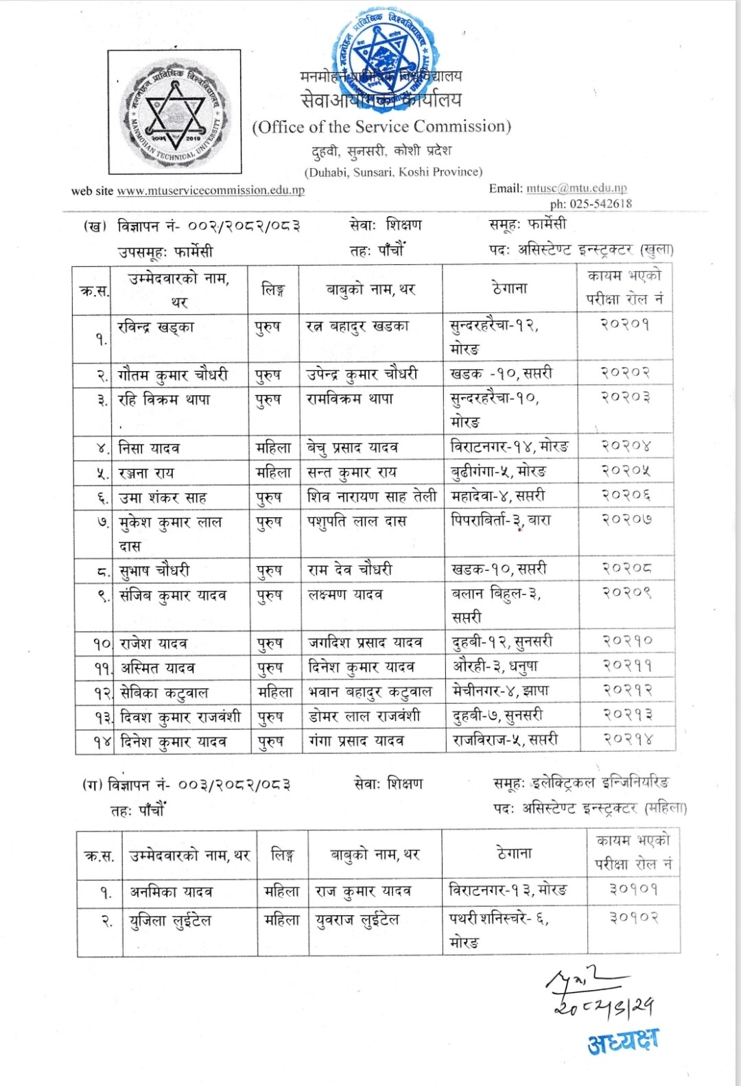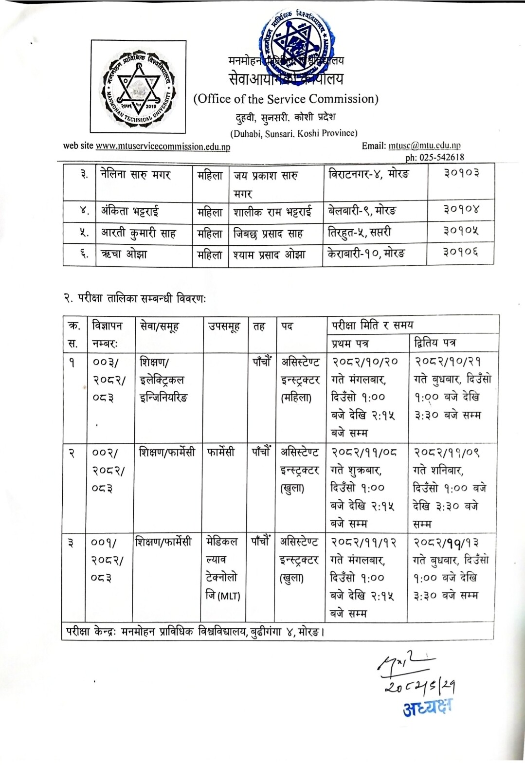 मनमोहन प्राविधिक विश्वविद्यालय - सेवा आयोग